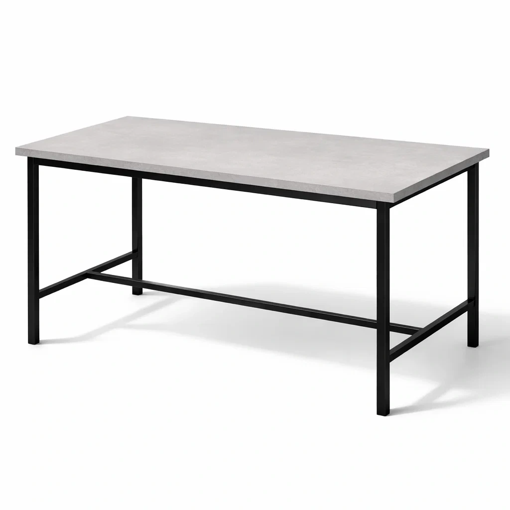 - Tischplatte Material: Faserplatte mit Betonoptik